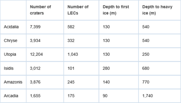 Table 1: Review of layered ejecta craters (LECs) at the Pla...